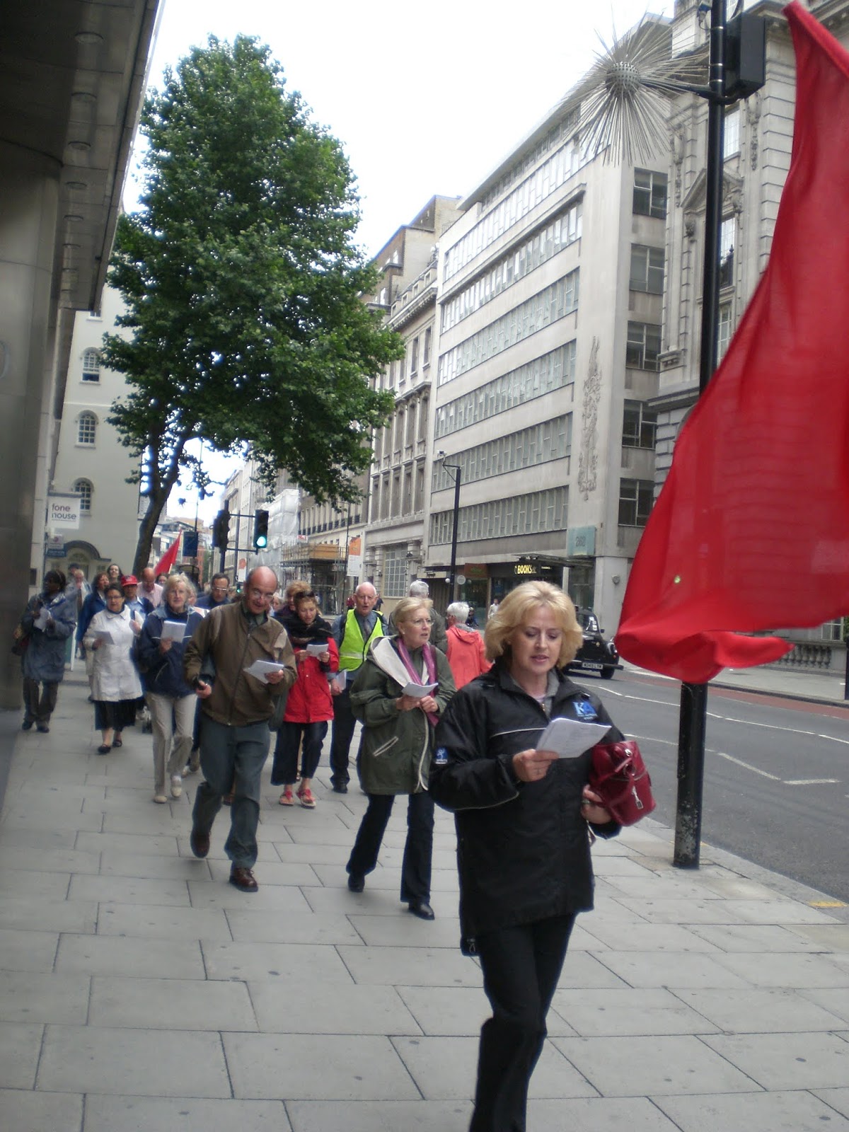 We caught the train and met a group of Catholics and historians at Tower Hill. The Martyrs Walk was led by Joanna Bogle and the Franciscan Friars of Renewal and the idea was to visit historic sites in London, the first Catholic Churches now destroyed, priories torn down during the reformation, and Joanna Bogle would explain the history behind these sites.